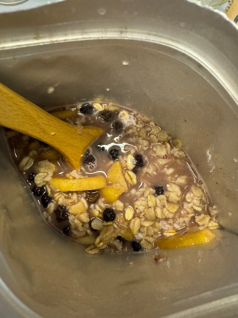 I think DIY crisp is an easy trail meal to experiment making myself, and I can change up the fruit as I want – strawberries or mangos sprint to mind.